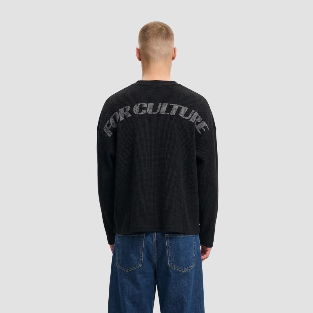 The FOR CULTURE Waffle Long Sleeve is crafted from lightweight cotton waffle fabric, delivering breathable comfort with a soft textured feel. Designed with a crop and boxy silhouette, it creates a clean, structured fit that sits naturally within modern streetwear.