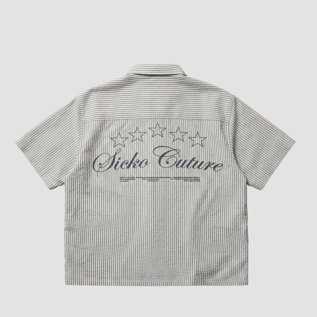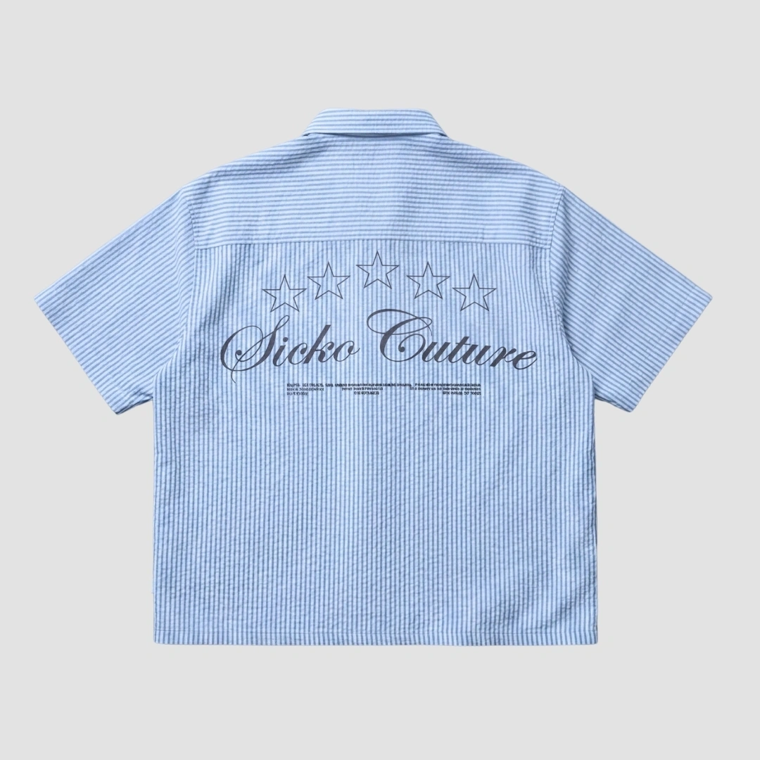 The Sicko Five Star Shirt blends clean minimal stripes with bold identity. Featuring our signature five-star graphic and Sicko Culture script across the back, this piece is made to stand out without trying too hard.
